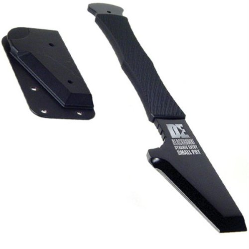 Features: Blade Detail: Plain Edge. Blade Length (inches): 4.40. Blade Material: D2, Black. Carry System: Sheath. Handle Material: D2. Overall Length (inches): 14.46. Special Features: Rubber Overmold Handle, Includes Backpack Mounting Hardware.